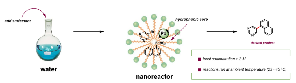 There are many who believe that water is the “greenest” solvent, and there has been considerable work in recent years to demonstrate a variety of synthetic reactions in water that historically have only been carried out in organic solvents. Roundtable member companies have organized to share best practices and advance the reaction, work-up, and isolation technology required for running water-based synthetic organic reactions.